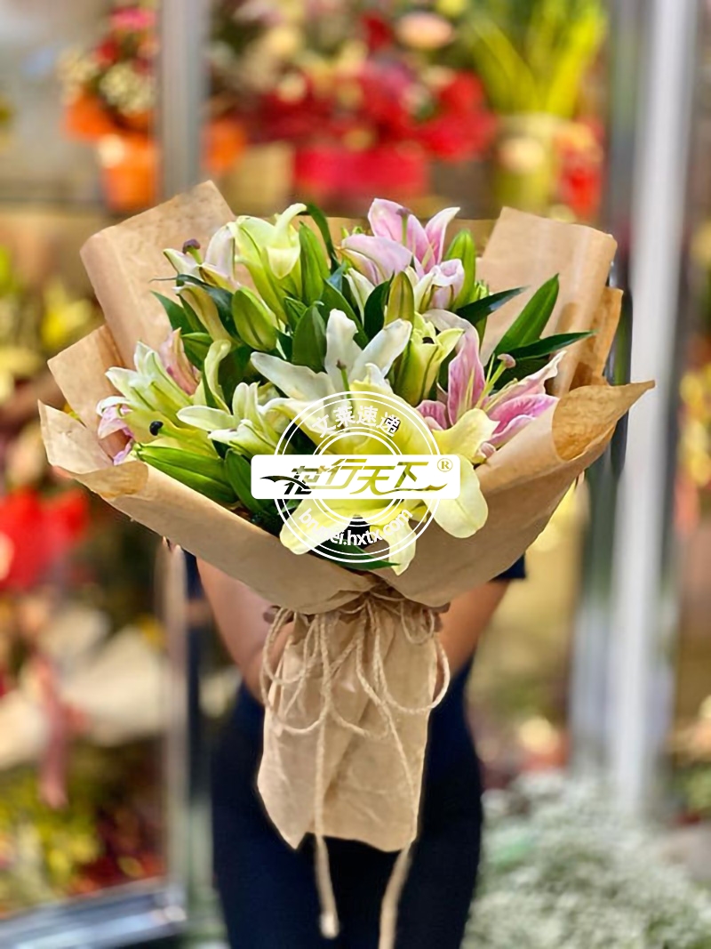 7支混色百合组成、精美包装.
